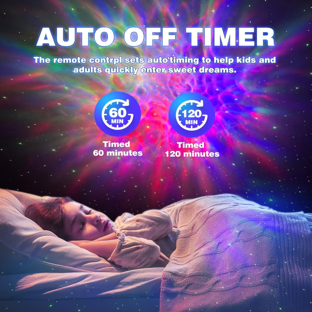 With this projector, you can relax and sleep better, thanks to its automatic timer of 60 or 120 minutes that lets it turn off on its own while you enjoy a room full of lights and stars.